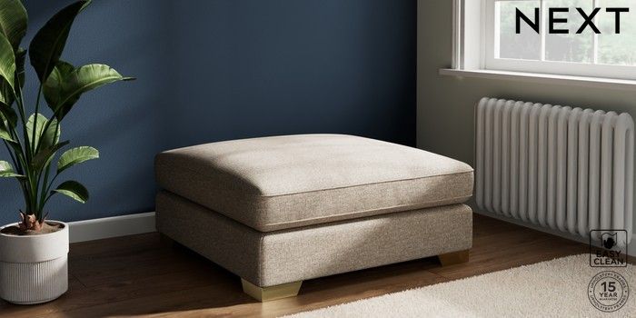 7.3.1 Buy Stamford Grand Relaxed Sit Extra Large Footstool Chunky Boucle Easy Clean Mid Natural Square Angle - Brushed Brass from the Seasons online shop Click here to use our website with more accessibility support, for example screen readers