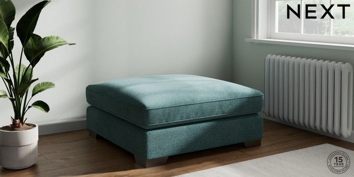 7.3.1 Buy Stamford Grand Relaxed Sit Extra Large Footstool Chunky Chenille Mid Teal Green Square Angle - Gunmetal from the Seasons online shop Click here to use our website with more accessibility support, for example screen readers