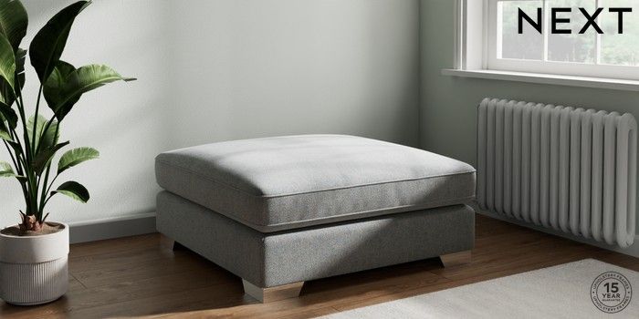 7.3.1 Buy Stamford Grand Relaxed Sit Extra Large Footstool Chunky Marl Mid Grey Square Angle - Chrome Metal from the Seasons online shop Click here to use our website with more accessibility support, for example screen readers