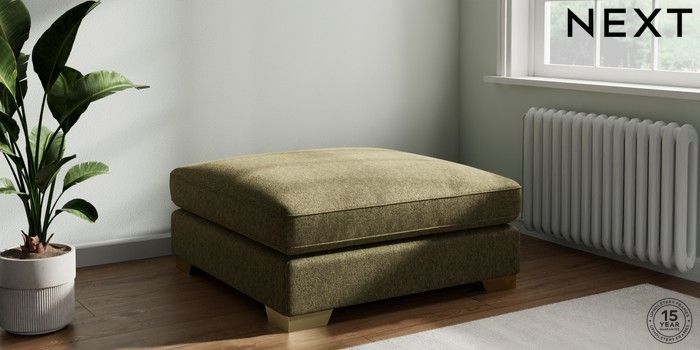 7.3.1 Buy Stamford Grand Relaxed Sit Extra Large Footstool Cotswold Chenille Dark Green Square Angle - Brushed Brass from the Seasons online shop Click here to use our website with more accessibility support, for example screen readers