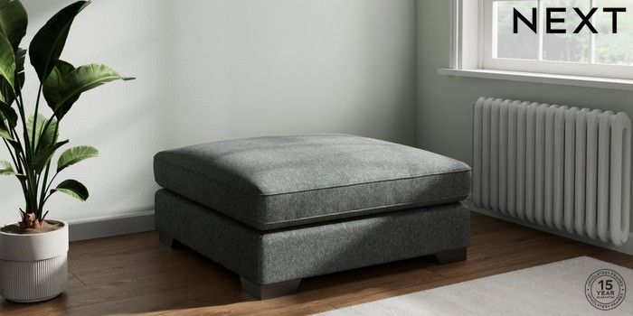 7.3.1 Buy Stamford Grand Relaxed Sit Extra Large Footstool Cotswold Chenille Dark Grey Square Angle - Gunmetal from the Seasons online shop Click here to use our website with more accessibility support, for example screen readers