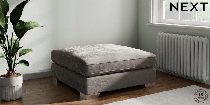 7.3.1 Buy Stamford Grand Relaxed Sit Extra Large Footstool Distressed Velour French Grey Square Angle - Chrome Metal from the Seasons online shop Click here to use our website with more accessibility support, for example screen readers