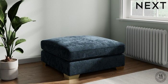 7.3.1 Buy Stamford Grand Relaxed Sit Extra Large Footstool Distressed Velour Midnight Blue Square Angle - Brushed Brass from the Seasons online shop Click here to use our website with more accessibility support, for example screen readers