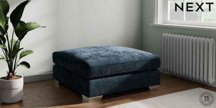 7.3.1 Buy Stamford Grand Relaxed Sit Extra Large Footstool Distressed Velour Midnight Blue Square Angle - Chrome Metal from the Seasons online shop Click here to use our website with more accessibility support, for example screen readers