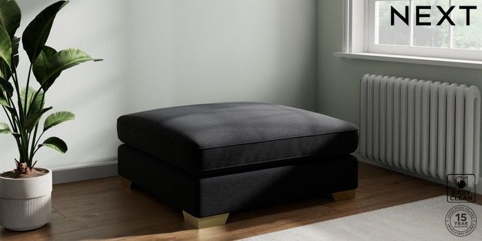7.3.1 Buy Stamford Grand Relaxed Sit Extra Large Footstool Fine Chenille Easy Clean Black Square Angle - Brushed Brass from the Seasons online shop Click here to use our website with more accessibility support, for example screen readers