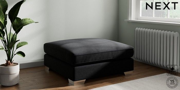 7.3.1 Buy Stamford Grand Relaxed Sit Extra Large Footstool Fine Chenille Easy Clean Black Square Angle - Chrome Metal from the Seasons online shop Click here to use our website with more accessibility support, for example screen readers