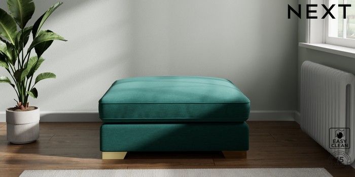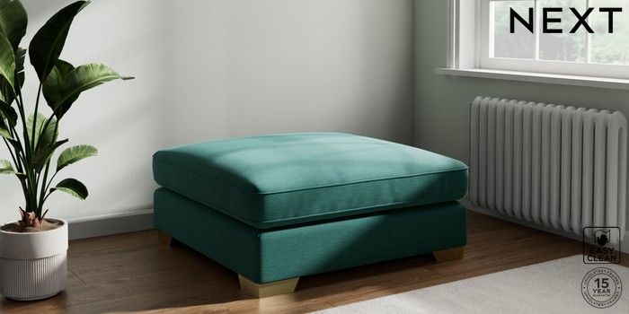 7.3.1 Buy Stamford Grand Relaxed Sit Extra Large Footstool Fine Chenille Easy Clean Dark Juniper Green Square Angle - Brushed Brass from the Seasons online shop Click here to use our website with more accessibility support, for example screen readers