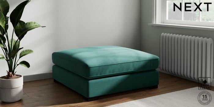 7.3.1 Buy Stamford Grand Relaxed Sit Extra Large Footstool Fine Chenille Easy Clean Dark Juniper Green Square Angle - Dark from the Seasons online shop Click here to use our website with more accessibility support, for example screen readers