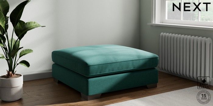 7.3.1 Buy Stamford Grand Relaxed Sit Extra Large Footstool Fine Chenille Easy Clean Dark Juniper Green Square Angle - Gunmetal from the Seasons online shop Click here to use our website with more accessibility support, for example screen readers