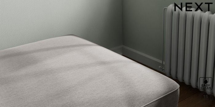 A chunky, hardwearing fabric with a timeless look which can tackle most household stains by blotting or gently wiping the fabric with water and a mild detergent. This Fabric is covered by the Quality Fabric Kitemark