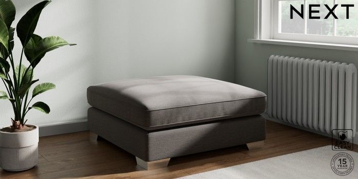 7.3.1 Buy Stamford Grand Relaxed Sit Extra Large Footstool Fine Chenille Easy Clean Dark Smoke Grey Square Angle - Chrome Metal from the Seasons online shop Click here to use our website with more accessibility support, for example screen readers