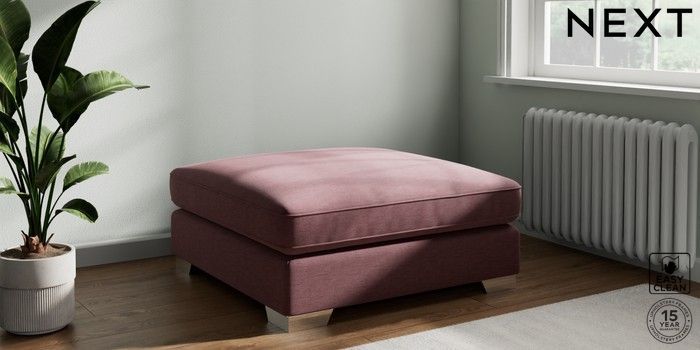 7.3.1 Buy Stamford Grand Relaxed Sit Extra Large Footstool Fine Chenille Easy Clean Mid Mulberry Purple Square Angle - Chrome Metal from the Seasons online shop