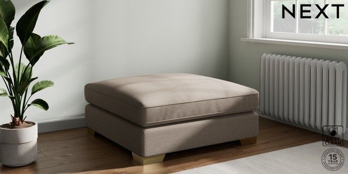 7.3.1 Buy Stamford Grand Relaxed Sit Extra Large Footstool Fine Chenille Easy Clean Mid Taupe Brown Square Angle - Brushed Brass from the Seasons online shop Click here to use our website with more accessibility support, for example screen readers