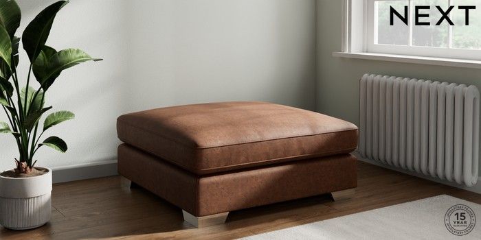 7.3.1 Buy Stamford Grand Relaxed Sit Extra Large Footstool Monza Faux Leather Easy Clean Chestnut Brown Square Angle - Chrome Metal from the Seasons online shop