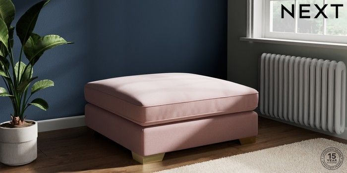 7.3.1 Buy Stamford Grand Relaxed Sit Extra Large Footstool Natural Mix Light Rose Pink Square Angle - Brushed Brass from the Seasons online shop Click here to use our website with more accessibility support, for example screen readers