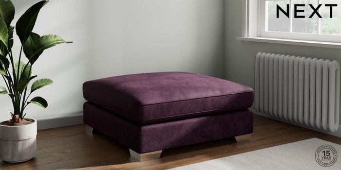 7.3.1 Buy Stamford Grand Relaxed Sit Extra Large Footstool Plush Chenille Dark Plum Purple Square Angle - Chrome Metal from the Seasons online shop Click here to use our website with more accessibility support, for example screen readers
