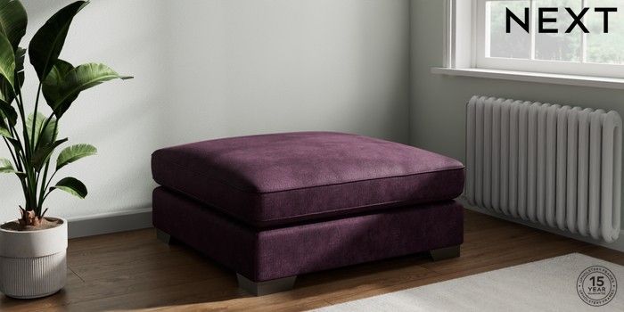 7.3.1 Buy Stamford Grand Relaxed Sit Extra Large Footstool Plush Chenille Dark Plum Purple Square Angle - Gunmetal from the Seasons online shop Click here to use our website with more accessibility support, for example screen readers