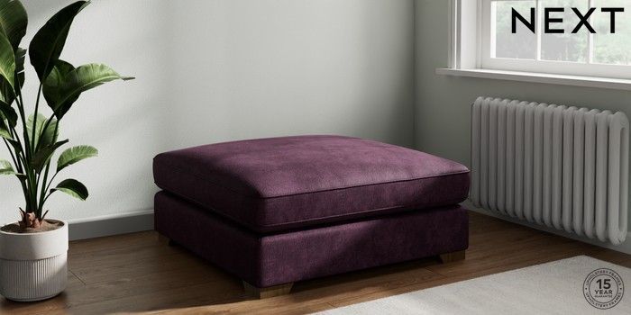 7.3.1 Buy Stamford Grand Relaxed Sit Extra Large Footstool Plush Chenille Dark Plum Purple Square Angle - Mid from the Seasons online shop Click here to use our website with more accessibility support, for example screen readers