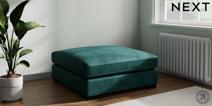 7.3.1 Buy Stamford Grand Relaxed Sit Extra Large Footstool Plush Chenille Dark Teal Green Square Angle - Dark from the Seasons online shop Click here to use our website with more accessibility support, for example screen readers