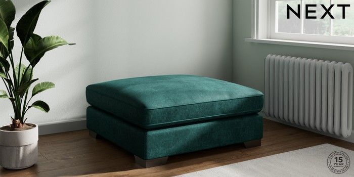 7.3.1 Buy Stamford Grand Relaxed Sit Extra Large Footstool Plush Chenille Dark Teal Green Square Angle - Gunmetal from the Seasons online shop Click here to use our website with more accessibility support, for example screen readers