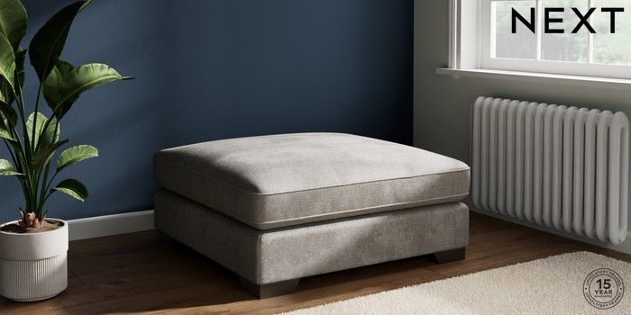 7.3.1 Buy Stamford Grand Relaxed Sit Extra Large Footstool Plush Chenille Light Grey Square Angle - Gunmetal from the Seasons online shop Click here to use our website with more accessibility support, for example screen readers