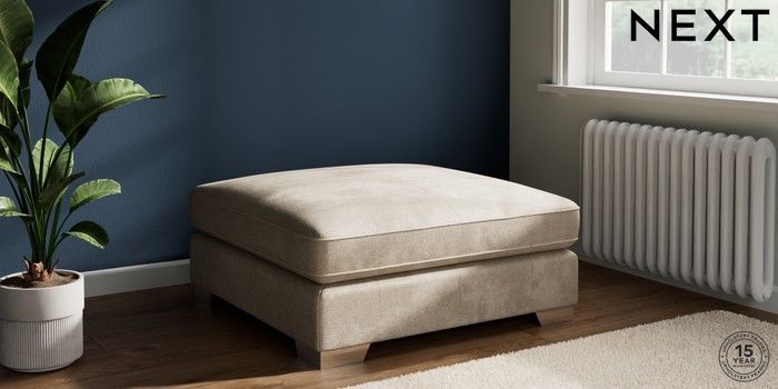 7.3.1 Buy Stamford Grand Relaxed Sit Extra Large Footstool Plush Chenille Light Natural Square Angle - Chrome Metal from the Seasons online shop Click here to use our website with more accessibility support, for example screen readers