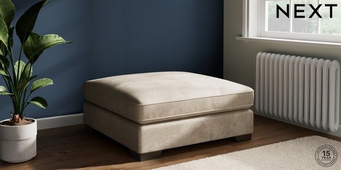7.3.1 Buy Stamford Grand Relaxed Sit Extra Large Footstool Plush Chenille Light Natural Square Angle - Gunmetal from the Seasons online shop Click here to use our website with more accessibility support, for example screen readers