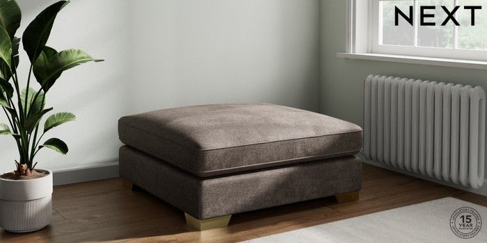 7.3.1 Buy Stamford Grand Relaxed Sit Extra Large Footstool Plush Chenille Mink Brown Square Angle - Brushed Brass from the Seasons online shop Click here to use our website with more accessibility support, for example screen readers