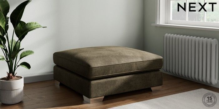 7.3.1 Buy Stamford Grand Relaxed Sit Extra Large Footstool Plush Chenille Moss Green Square Angle - Chrome Metal from the Seasons online shop Click here to use our website with more accessibility support, for example screen readers