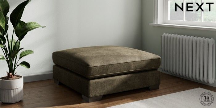 7.3.1 Buy Stamford Grand Relaxed Sit Extra Large Footstool Plush Chenille Moss Green Square Angle - Gunmetal from the Seasons online shop Click here to use our website with more accessibility support, for example screen readers
