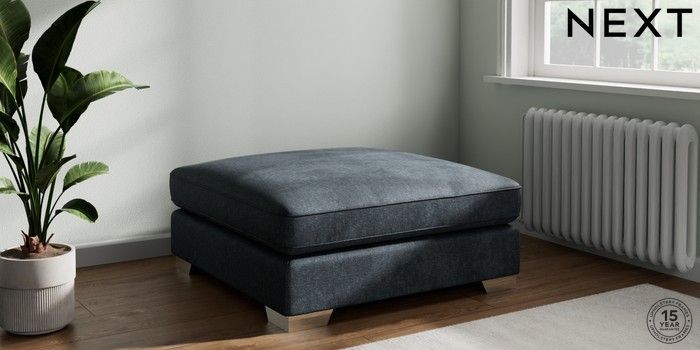 7.3.1 Buy Stamford Grand Relaxed Sit Extra Large Footstool Plush Chenille Slate Blue Square Angle - Chrome Metal from the Seasons online shop Click here to use our website with more accessibility support, for example screen readers