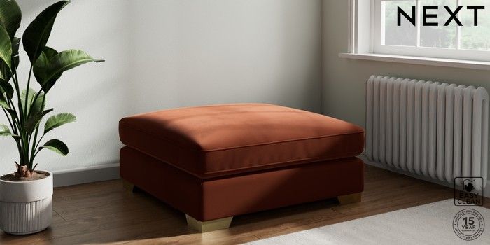 7.3.1 Buy Stamford Grand Relaxed Sit Extra Large Footstool Plush Velvet Easy Clean Ginger Orange Square Angle - Brushed Brass from the Seasons online shop Click here to use our website with more accessibility support, for example screen readers