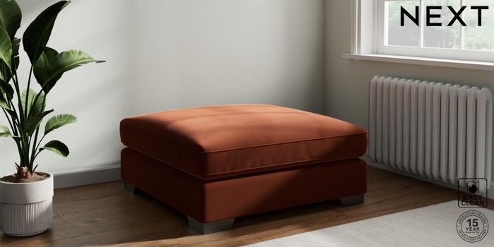 7.3.1 Buy Stamford Grand Relaxed Sit Extra Large Footstool Plush Velvet Easy Clean Ginger Orange Square Angle - Gunmetal from the Seasons online shop