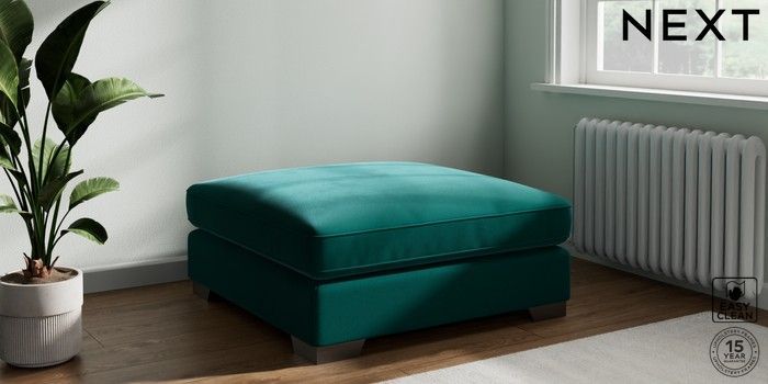 7.3.1 Buy Stamford Grand Relaxed Sit Extra Large Footstool Plush Velvet Easy Clean Juniper Green Square Angle - Gunmetal from the Seasons online shop