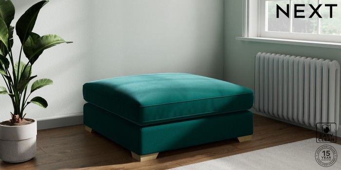 7.3.1 Buy Stamford Grand Relaxed Sit Extra Large Footstool Plush Velvet Easy Clean Juniper Green Square Angle - Light from the Seasons online shop Click here to use our website with more accessibility support, for example screen readers