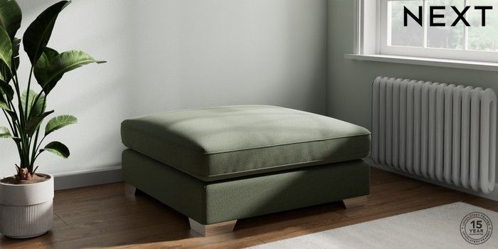 7.3.1 Buy Stamford Grand Relaxed Sit Extra Large Footstool Relaxed Linen Look Dark Green Square Angle - Chrome Metal from the Seasons online shop Click here to use our website with more accessibility support, for example screen readers