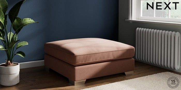 7.3.1 Buy Stamford Grand Relaxed Sit Extra Large Footstool Relaxed Linen Look Light Rust Brown Square Angle - Chrome Metal from the Seasons online shop Click here to use our website with more accessibility support, for example screen readers