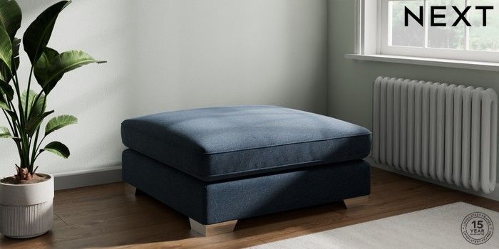 7.3.1 Buy Stamford Grand Relaxed Sit Extra Large Footstool Ripple Chenille Dark Blue Square Angle - Chrome Metal from the Seasons online shop Click here to use our website with more accessibility support, for example screen readers