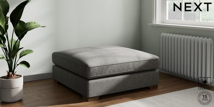 7.3.1 Buy Stamford Grand Relaxed Sit Extra Large Footstool Tweedy Blend Easy Clean Dark Grey Square Angle - Mid from the Seasons online shop Click here to use our website with more accessibility support, for example screen readers