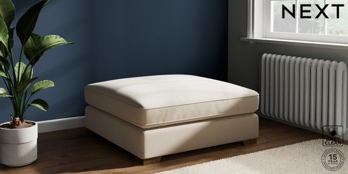 7.3.1 Buy Stamford Grand Relaxed Sit Extra Large Footstool Tweedy Blend Easy Clean Oyster Square Angle - Mid from the Seasons online shop Click here to use our website with more accessibility support, for example screen readers