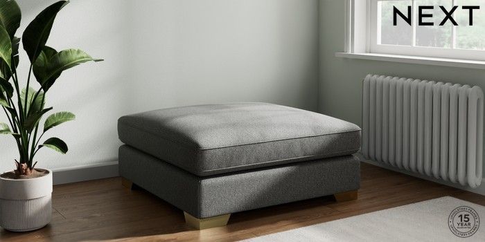 7.3.1 Buy Stamford Grand Relaxed Sit Extra Large Footstool Tweedy Chenille Dark Grey Square Angle - Brushed Brass from the Seasons online shop Click here to use our website with more accessibility support, for example screen readers