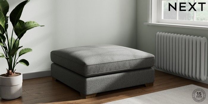 7.3.1 Buy Stamford Grand Relaxed Sit Extra Large Footstool Tweedy Chenille Dark Grey Square Angle - Mid from the Seasons online shop Click here to use our website with more accessibility support, for example screen readers