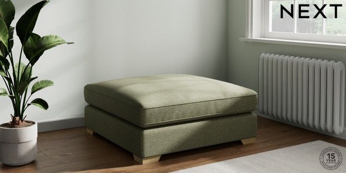 7.3.1 Buy Stamford Grand Relaxed Sit Extra Large Footstool Tweedy Chenille Mid Moss Green Square Angle - Light from the Seasons online shop Click here to use our website with more accessibility support, for example screen readers
