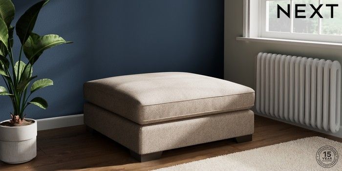 7.3.1 Buy Stamford Grand Relaxed Sit Extra Large Footstool Tweedy Chenille Mid Natural Square Angle - Gunmetal from the Seasons online shop Click here to use our website with more accessibility support, for example screen readers