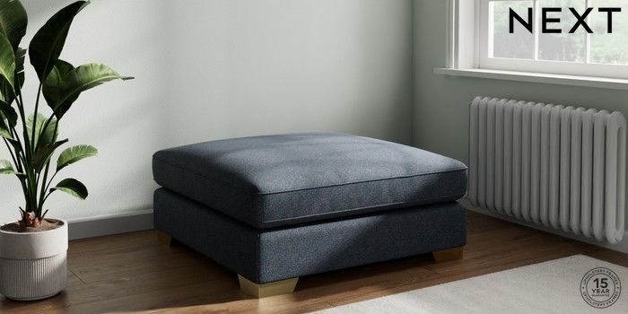 7.3.1 Buy Stamford Grand Relaxed Sit Extra Large Footstool Tweedy Chenille Navy Blue Square Angle - Brushed Brass from the Seasons online shop Click here to use our website with more accessibility support, for example screen readers