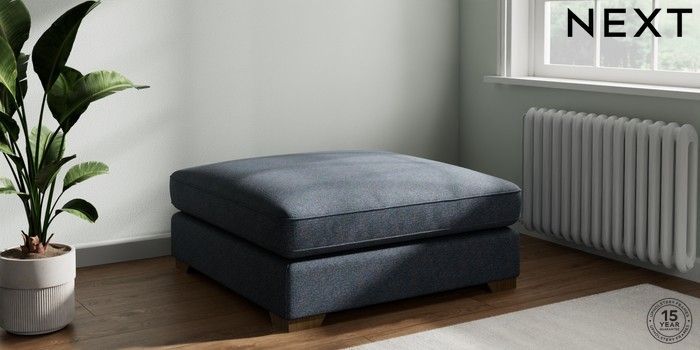 7.3.1 Buy Stamford Grand Relaxed Sit Extra Large Footstool Tweedy Chenille Navy Blue Square Angle - Mid from the Seasons online shop Click here to use our website with more accessibility support, for example screen readers