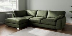 7.3.1 Buy Stamford Grand Relaxed Sit Large Corner Chaise - Left Hand Boucle Chenille Dark Moss Green Large Square Angle - Chrome Metal from the Seasons online shop Click here to use our website with more accessibility support, for example screen readers