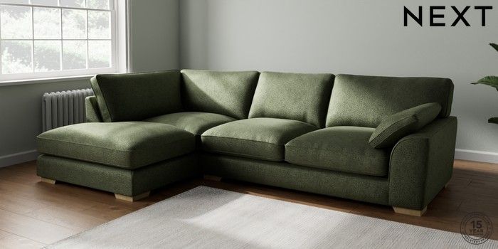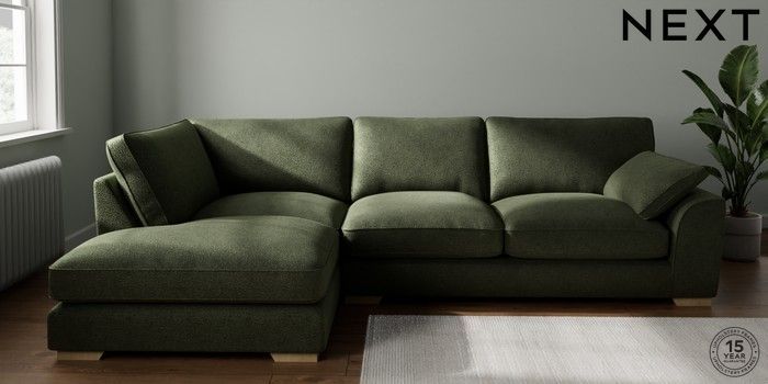 7.3.1 Buy Stamford Grand Relaxed Sit Large Corner Chaise - Left Hand Boucle Chenille Dark Moss Green Large Square Angle - Light from the Seasons online shop Click here to use our website with more accessibility support, for example screen readers