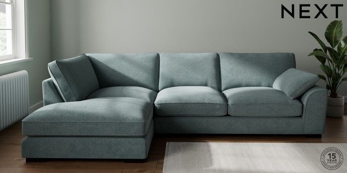 7.3.1 Buy Stamford Grand Relaxed Sit Large Corner Chaise - Left Hand Chunky Chenille Light Teal Green Large Square Angle - Dark from the Seasons online shop Click here to use our website with more accessibility support, for example screen readers
