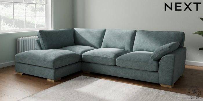 7.3.1 Buy Stamford Grand Relaxed Sit Large Corner Chaise - Left Hand Chunky Chenille Light Teal Green Large Square Angle - Light from the Seasons online shop Click here to use our website with more accessibility support, for example screen readers